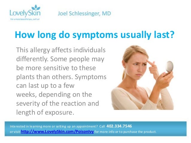 Joel Schlessinger MD - FAQ Poison Ivy Rashes from image.slidesharecdn.com How long can a food allergic reaction last? Food allergies are characterized by rapid onset, usually emerging in less than 30 minutes after consuming the food in children and within 2 hours in adults. Like any other allergic reaction, allergic reaction to shrimp may also worsen with time for some people. This is something that differs from person to person. The following eight foods and food groups are known to possibly cause problems with allergic reactions possibly up to 90% of the time. Call your doctor if you think your initial food allergy rash has become infected. Rashes caused by an antibiotic allergy may last 3 to 14 days, whereas diaper rash almost always clears up within 1 week (if diapers are changed. According to fare, it's possible to have a second wave of food allergy symptoms, which may occur up to four hours after the initial reaction, though this is rare.